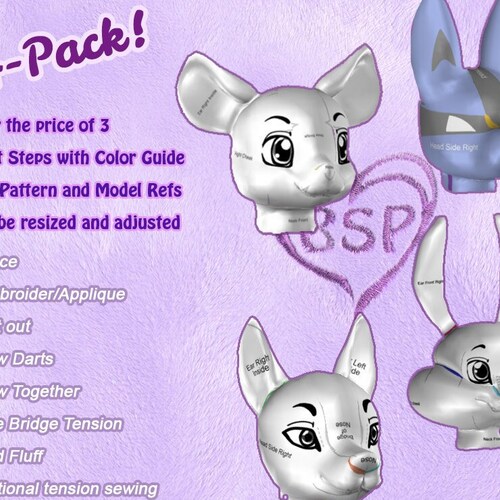 Patterns Anthro Plush Head Series 1 Mouse Lucario Dog Etsy